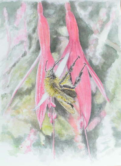A water colour of a bee. Drawn and painted from a picture that I had taken in 2002.